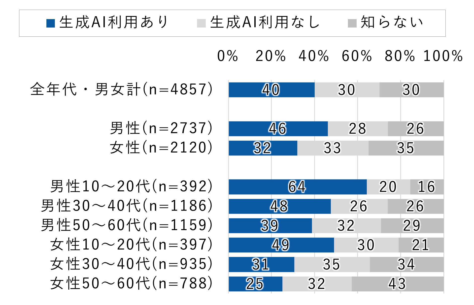 1. 生成AI利用率、過半数に拡大。全年代で増加
