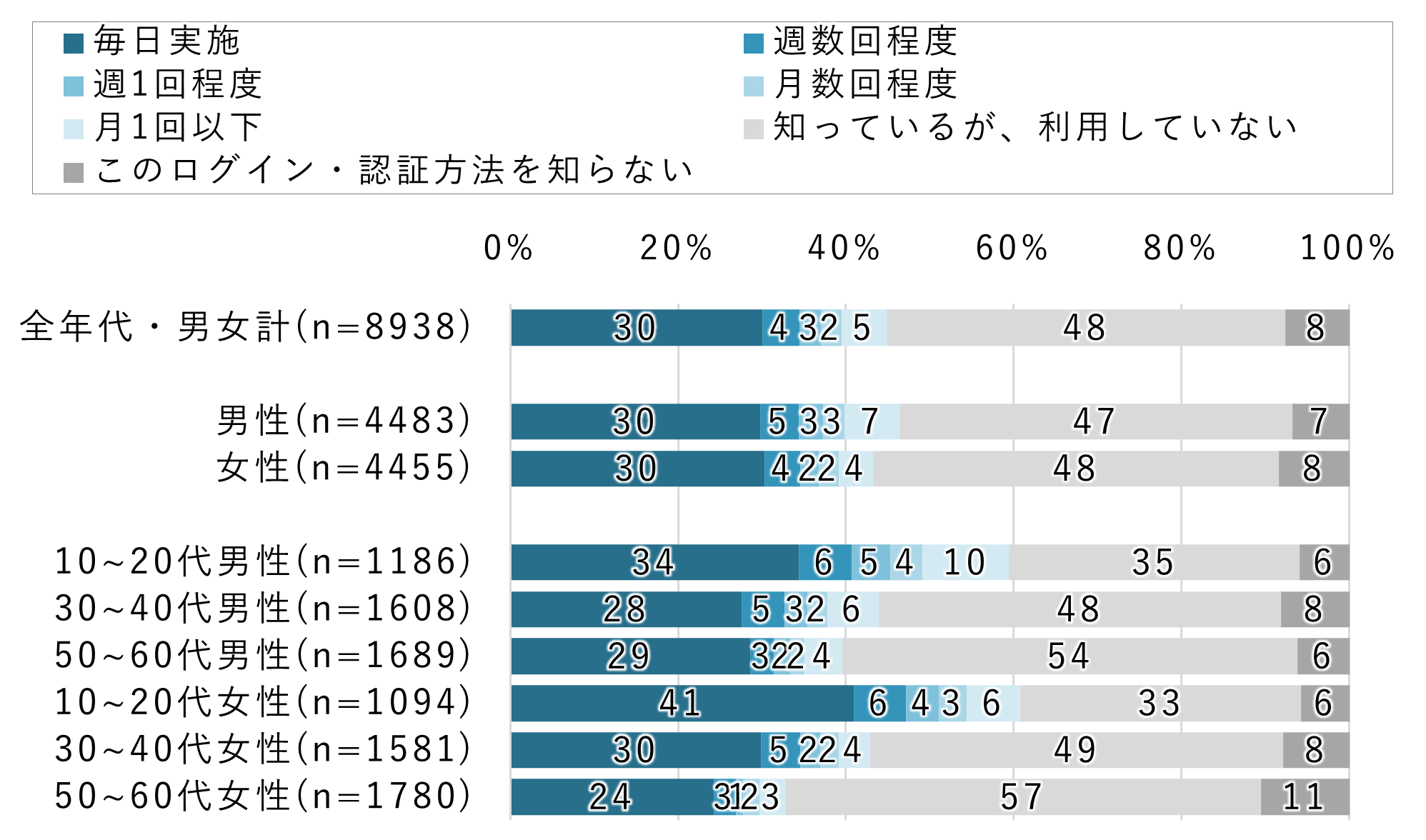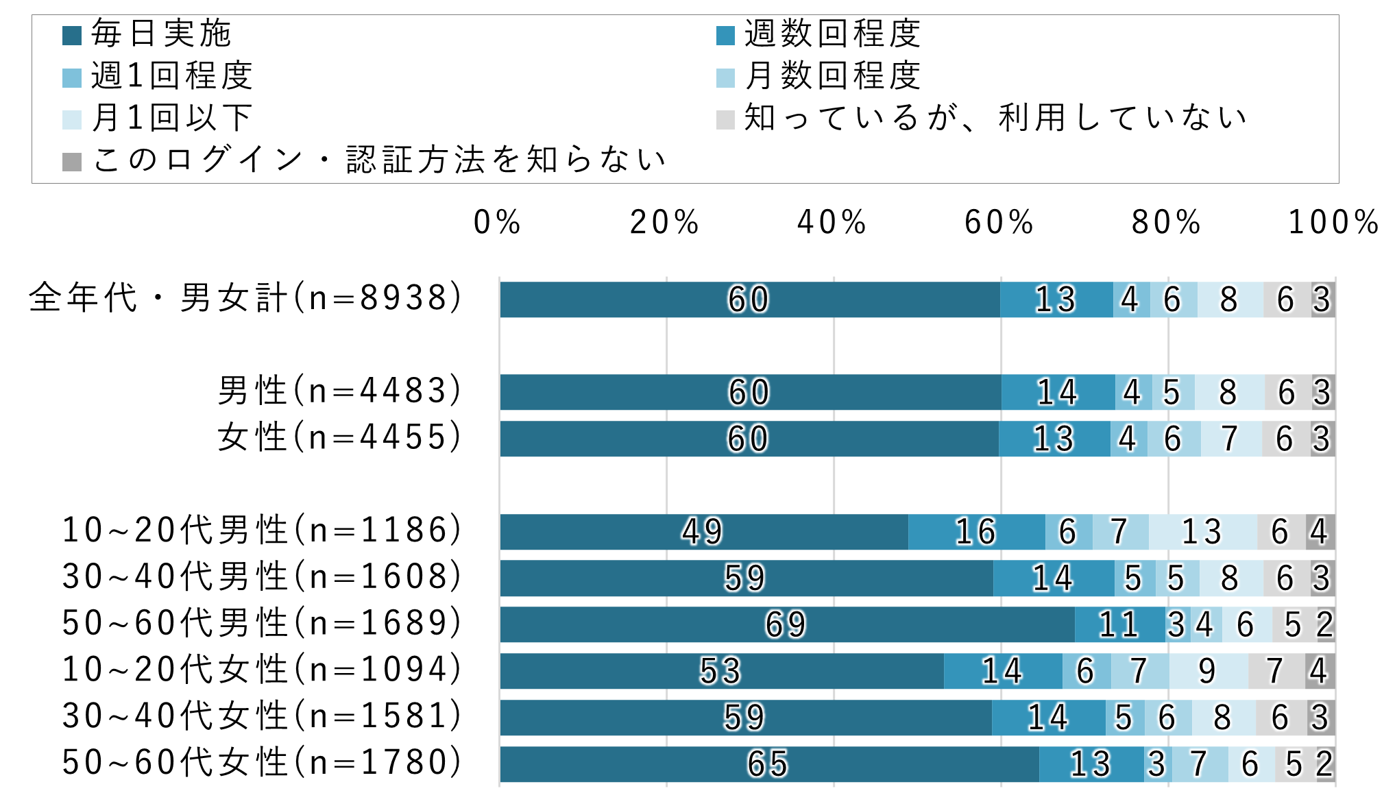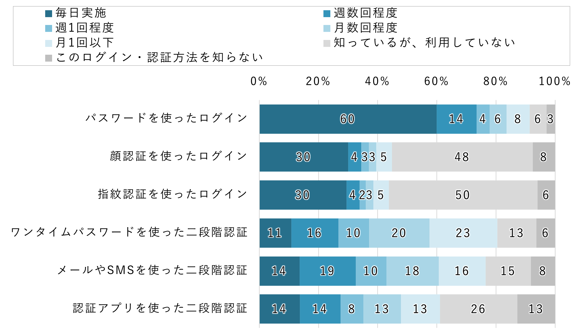 3. パスワード認証は約6割、顔・指紋認証は約3割が毎日利用