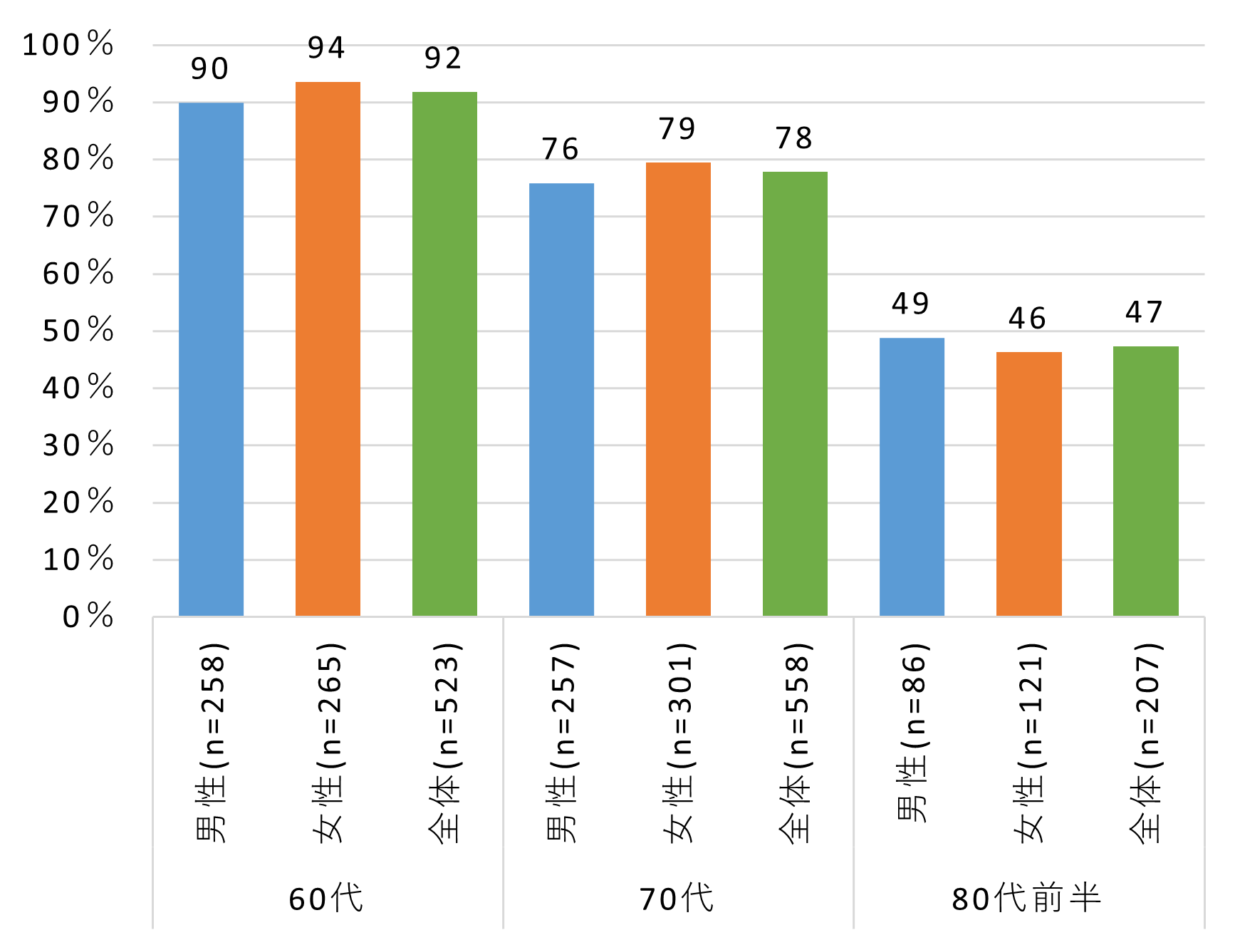 1. SNS利用率 60代 92%、70代 78%、80代前半 47%