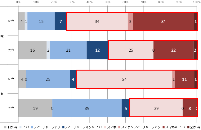 70代でスマホ所有率がフィーチャーフォン所有率を上回る