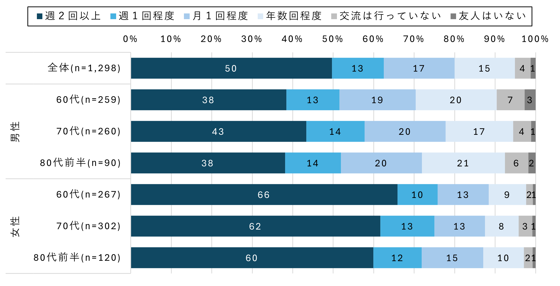 シニアの6割超が週1回以上友人と交流