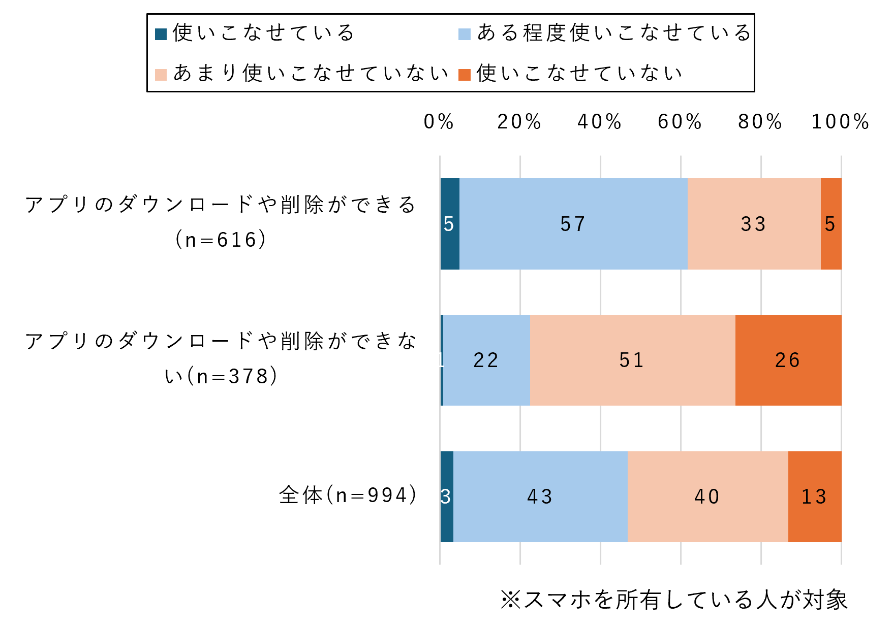 図1. スマホを使いこなせている(アプリのダウンロードや削除の実施可否別)
