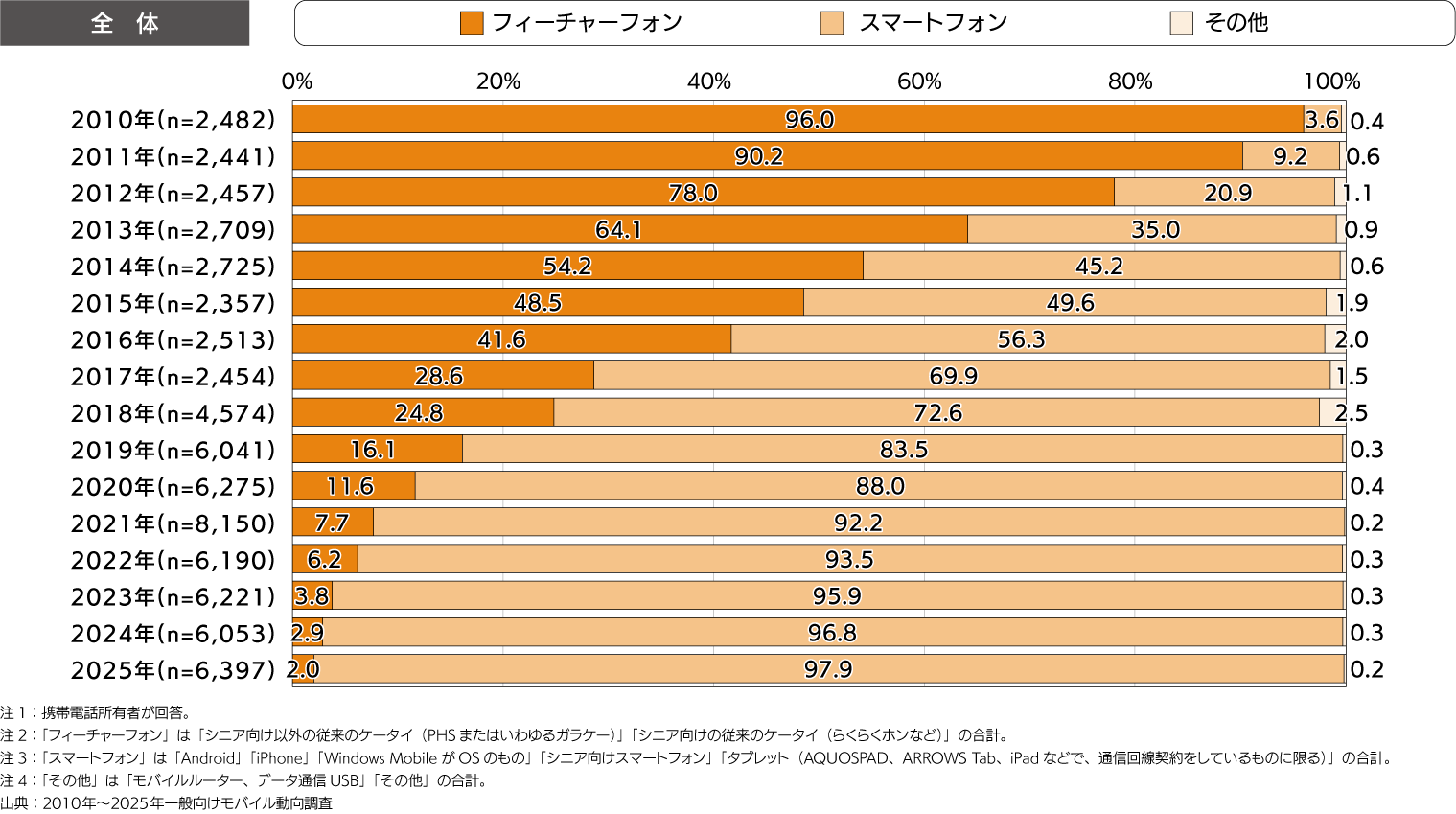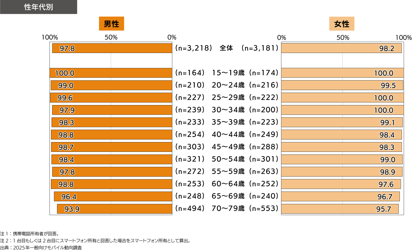 - 2025年のスマートフォン比率は97.9%。
