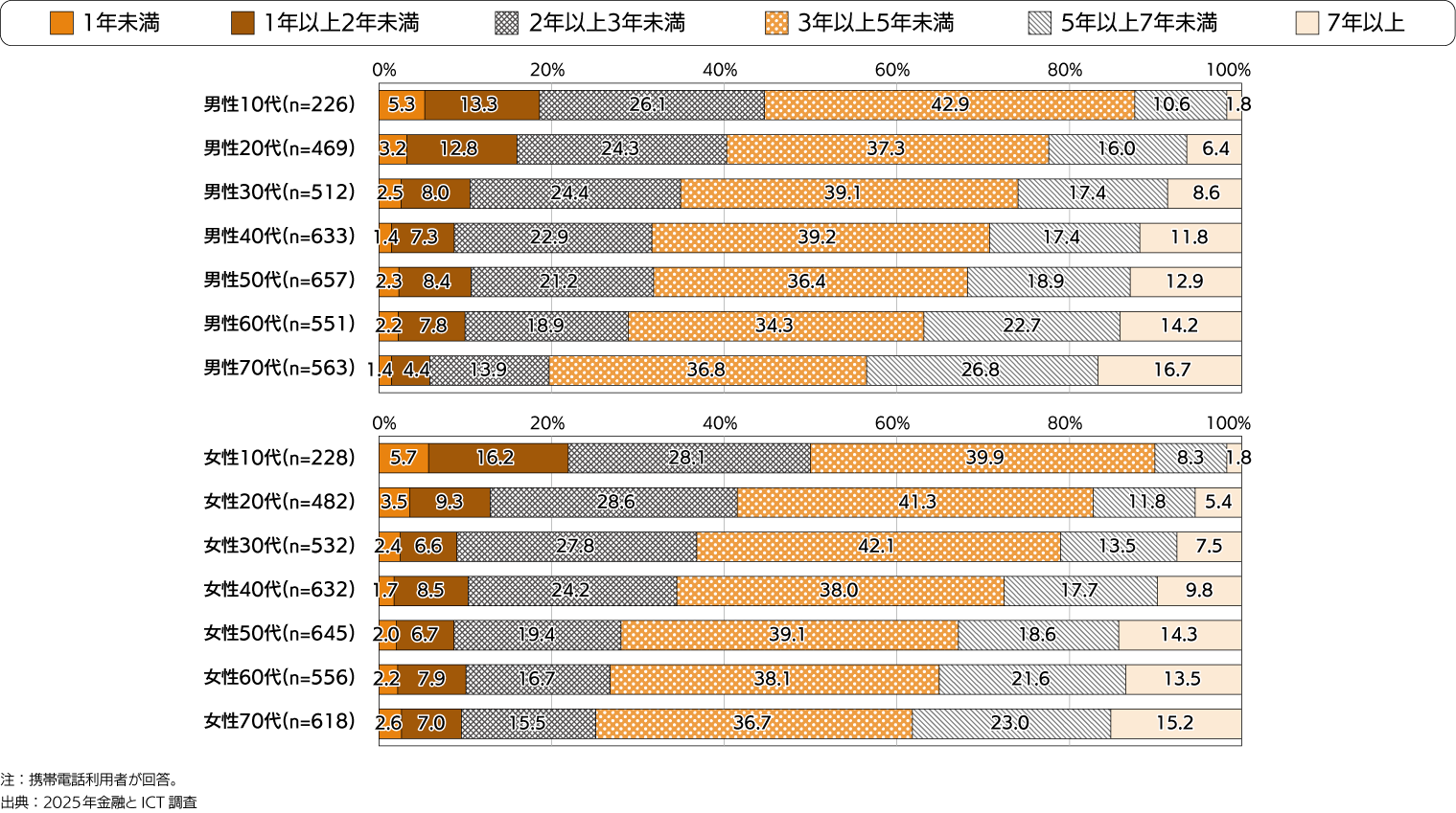 ![[資料1-7a] 現在利用している携帯電話の所有期間の年次推移[スマートフォン](単一回答)](img/wp25-1-07a.png)